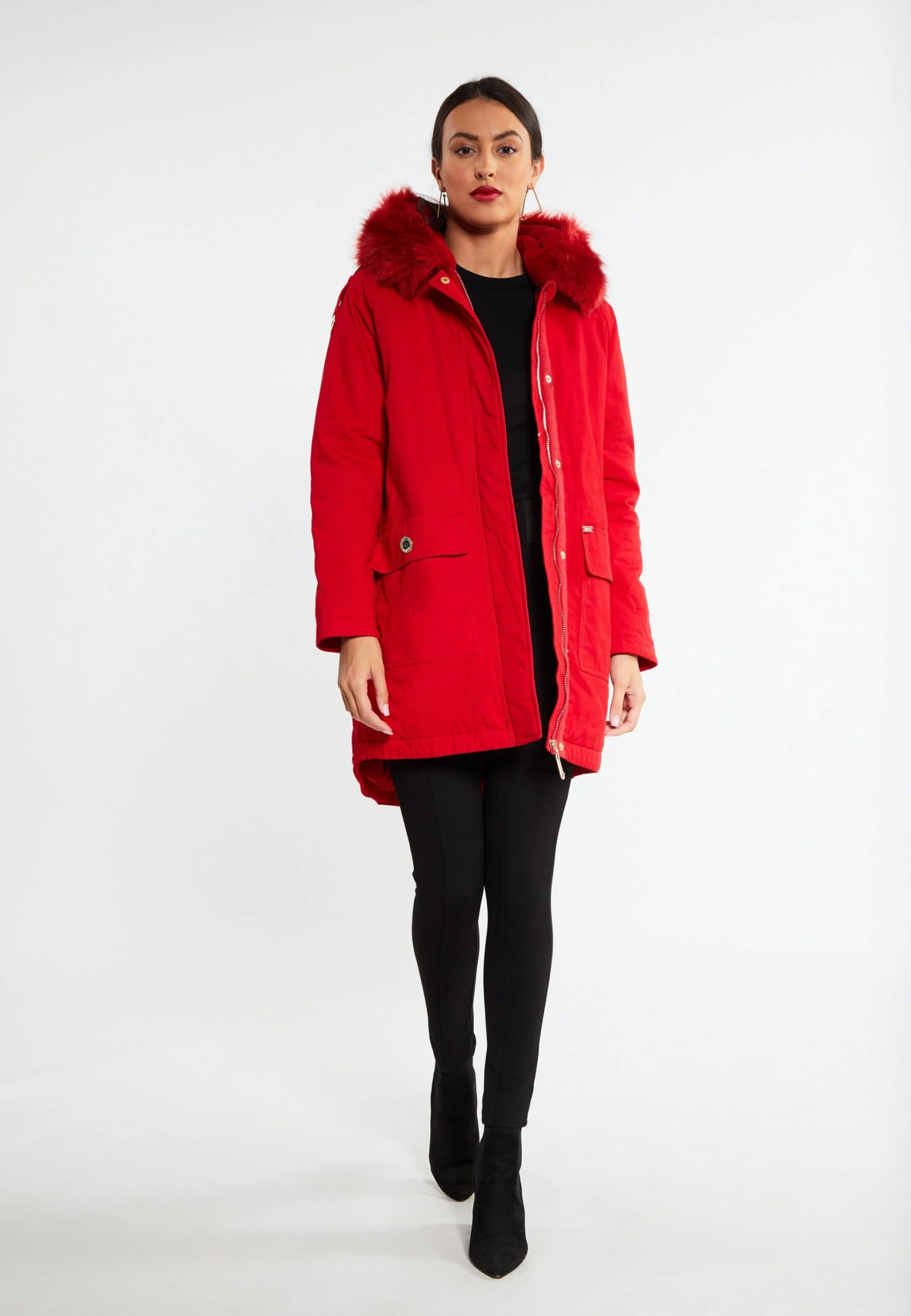 | Details capuchon | Gevoerd, afneembare imitatiebontkraag |